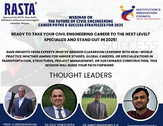 RASTA an Extension and Research Centre of Visvesvaraya Technological University (VTU), one of the largest Technological Universities in India, is offering post graduate courses and Ph.D programs for Civil Engineering graduates. The purpose of the PG Courses is to train the students with a curriculum that emphasizes on practical training, thus churn out competent highway engineers befitting industry needs.